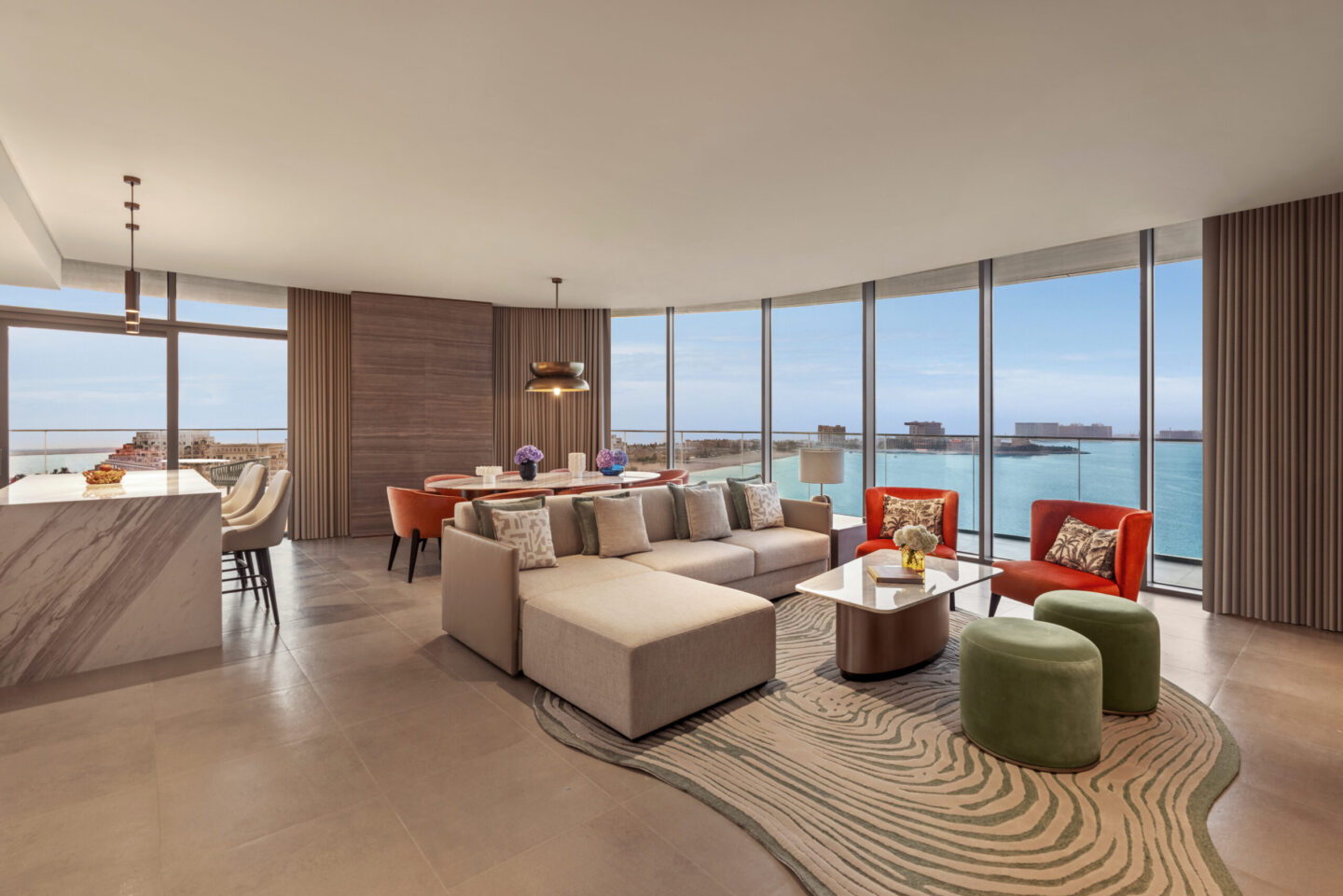 With 257 rooms and suites, each offering sweeping sea views, SO/ Ras Al Khaimah captures the essence of calm luxury. Highlights include the Icon Suite with its private terrace, the adults-only pool bar Bungalow, and the Savant Lounge on the 10th floor — a glamorous space where music, cocktails, and skyline views meet.